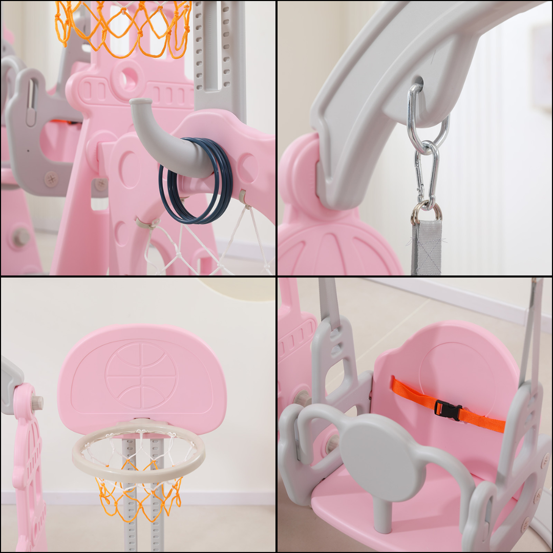 Lépjen be a szórakozásba és a biztonságba a gyerekszobába vagy az udvarba ezzel a többfunkciós 4 az 1-ben játszótérrel! Set tartalmazza csúszda, hinta, létra és kosár kosár kosár, változatos játéklehetőségek biztosítása a gyerekeknek és a motoros készségek fejlesztésének ösztönzése.