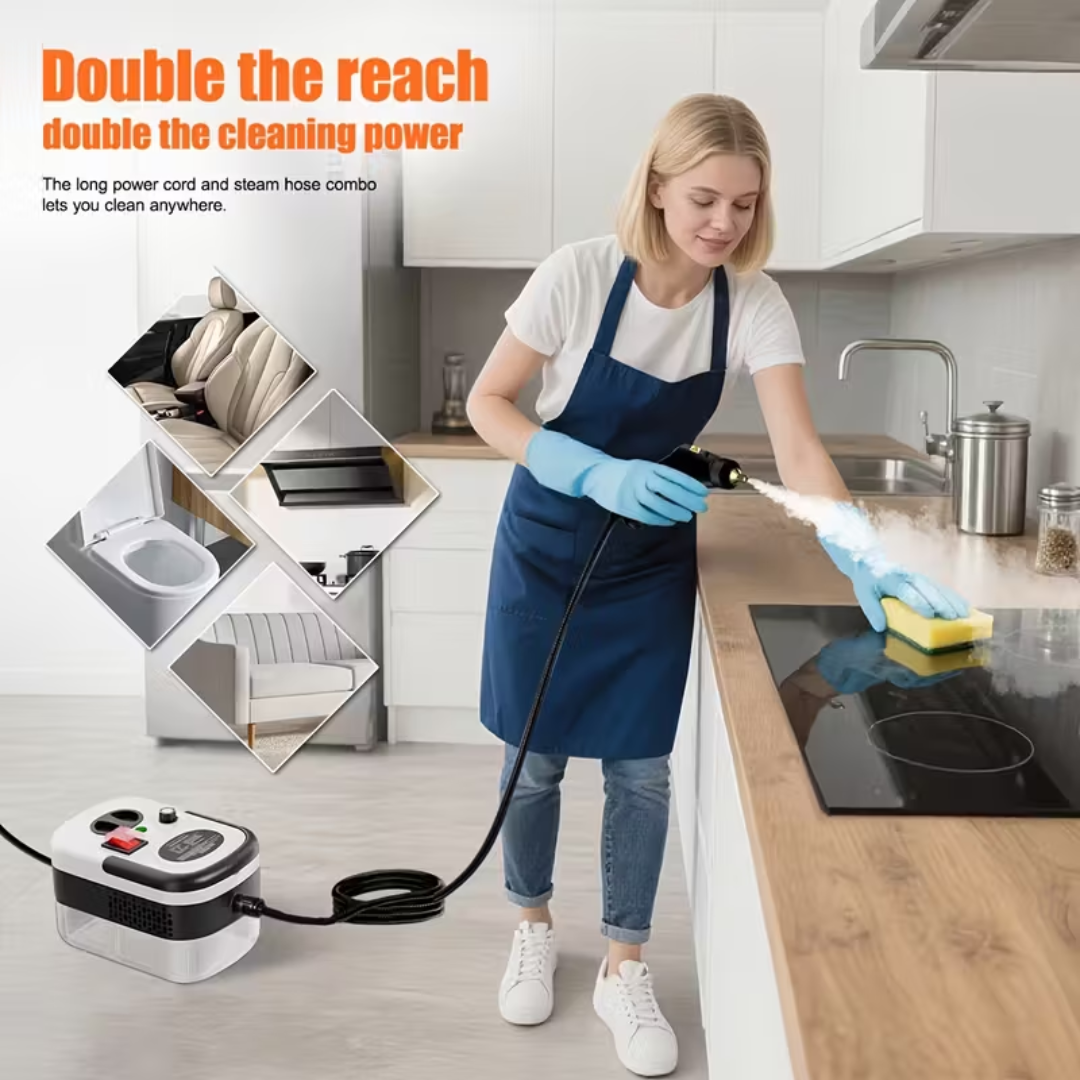 Tisztítsa meg otthonát és autóját természetes és hatékony módon hordozható gőztisztítónkkal, amely gazdag 20 tartozékkészlettel rendelkezik. Ez a többcélú eszköz magas hőmérsékletű gőzteljesítményt (akár 130 °C-ig) használ a szennyeződések, zsírok és baktériumok – mélyreható eltávolítására agresszív vegyszerek nélkül.