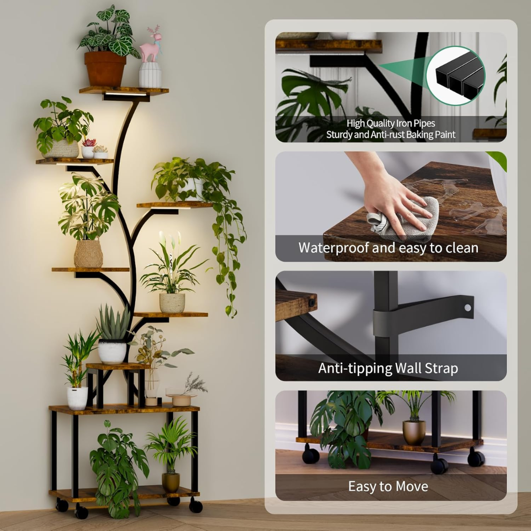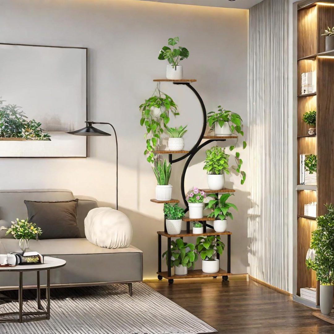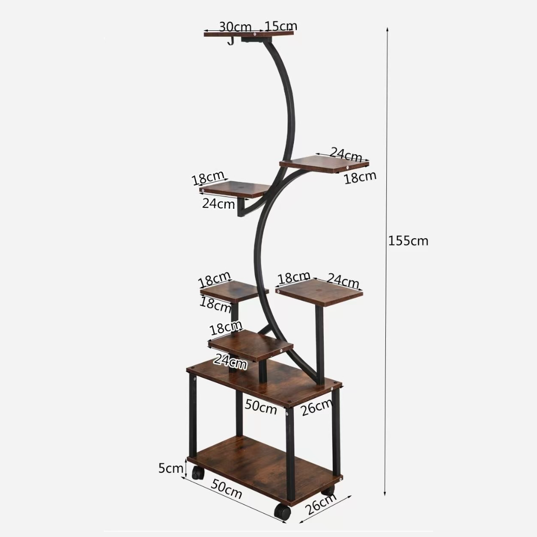 Adja meg otthonába a természetes szépséget és a modern esztétikát ezzel az elegáns S alakú fa növényeknek. Akár 155 cm magas, tartalmaz 8 polcszint, 8 bar állvány és 1 horog a növények felakasztásához, amely lehetővé teszi a növények teljes gyűjteményének rendszerezését és dekoratív megjelenítését.