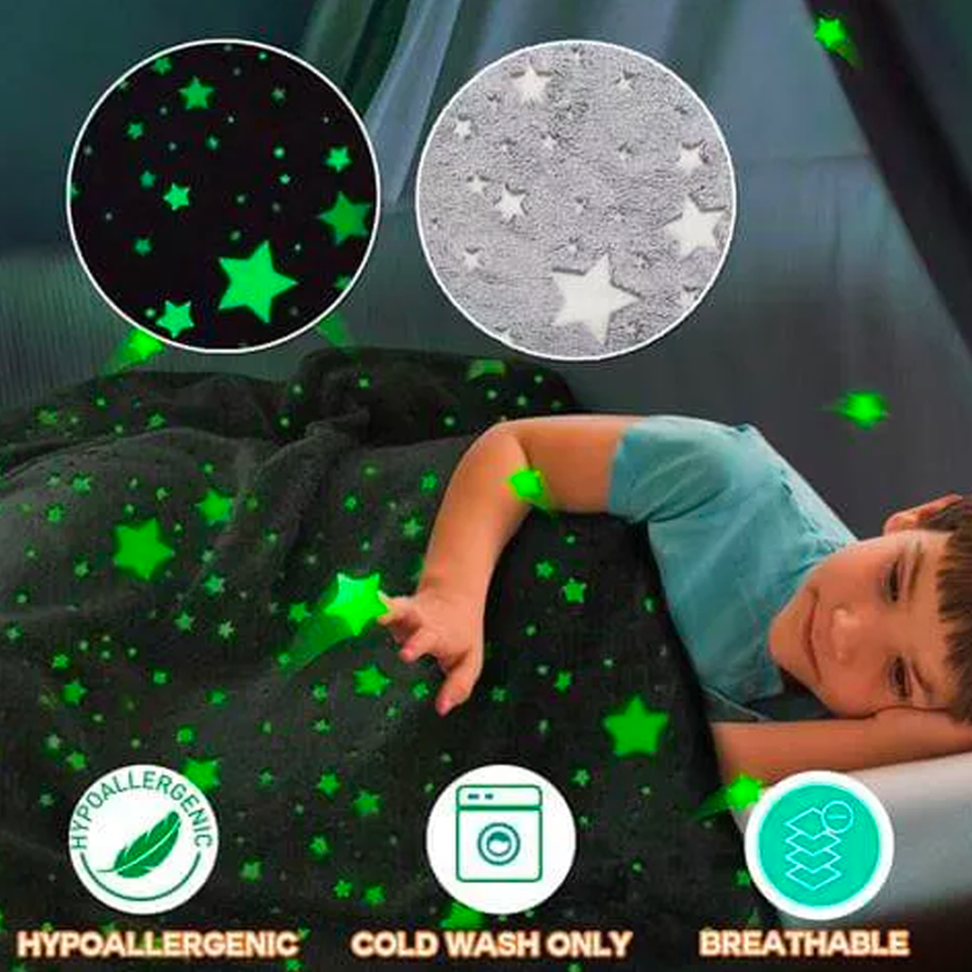 Egy gyönyörű és nagyon kényelmes világító takaró maximális kényelmet nyújt! A takaró puha anyagból készül, és nagyon kellemes tapintású. A takaró egyedülálló tulajdonsága, hogy szépen ragyog sötétben. Ez az oka annak, hogy a gyerekeid különösen kedvelik. Az alvás már nem jelent problémát. Hagyja a takarót közvetlen napfényben vagy belső világítás alatt a nap folyamán. A takaró természetesen „ kitölti a “ -et, így este ragyoghat és segíthet a gyermekeknek a sötét félelmétől. Modern kialakításának köszönhetően a takarót nemcsak a gyermekszobában, hanem a nappaliban is használhatja. Tekerje be magát egy puha takaróba, és élvezze a pihenés pillanatait.