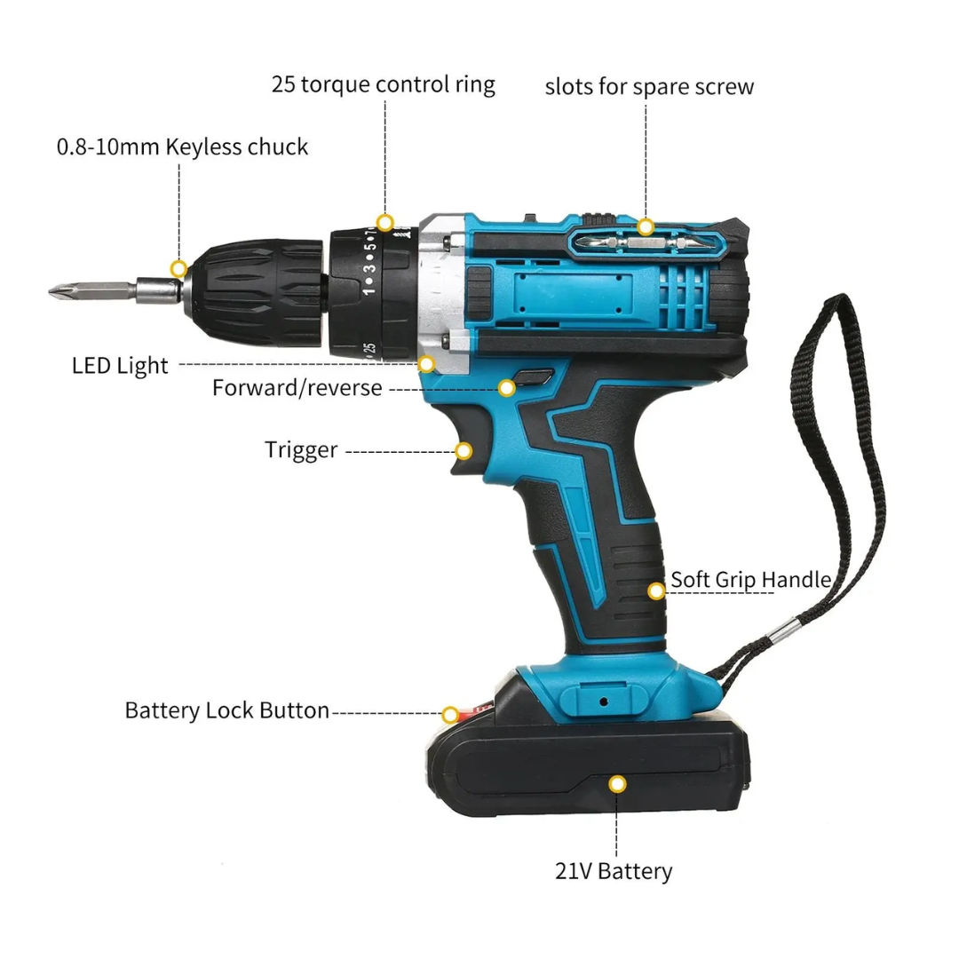Hatékony és erős 42V fúró ütés akut minden munkára a házban és a ház körül. S fém fej 13 mm-ig,, két sebesség és kalapács funkció, könnyedén fúrjon fát, fémet és falat. A csomagban jönnek két elem 5,0 Ah annak folyamatos munkájához 24 folytatásból álló készlet.