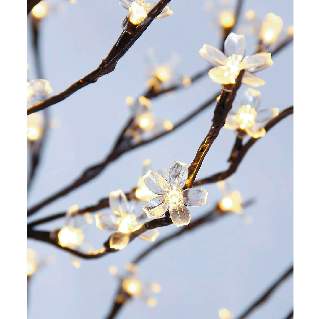 🌟 Dekoratív LED-fa cseresznyevirággal és ünnepi szellemmel, rugalmas ágakkal díszítve, amelyek az Ön igényei szerint alakíthatók.