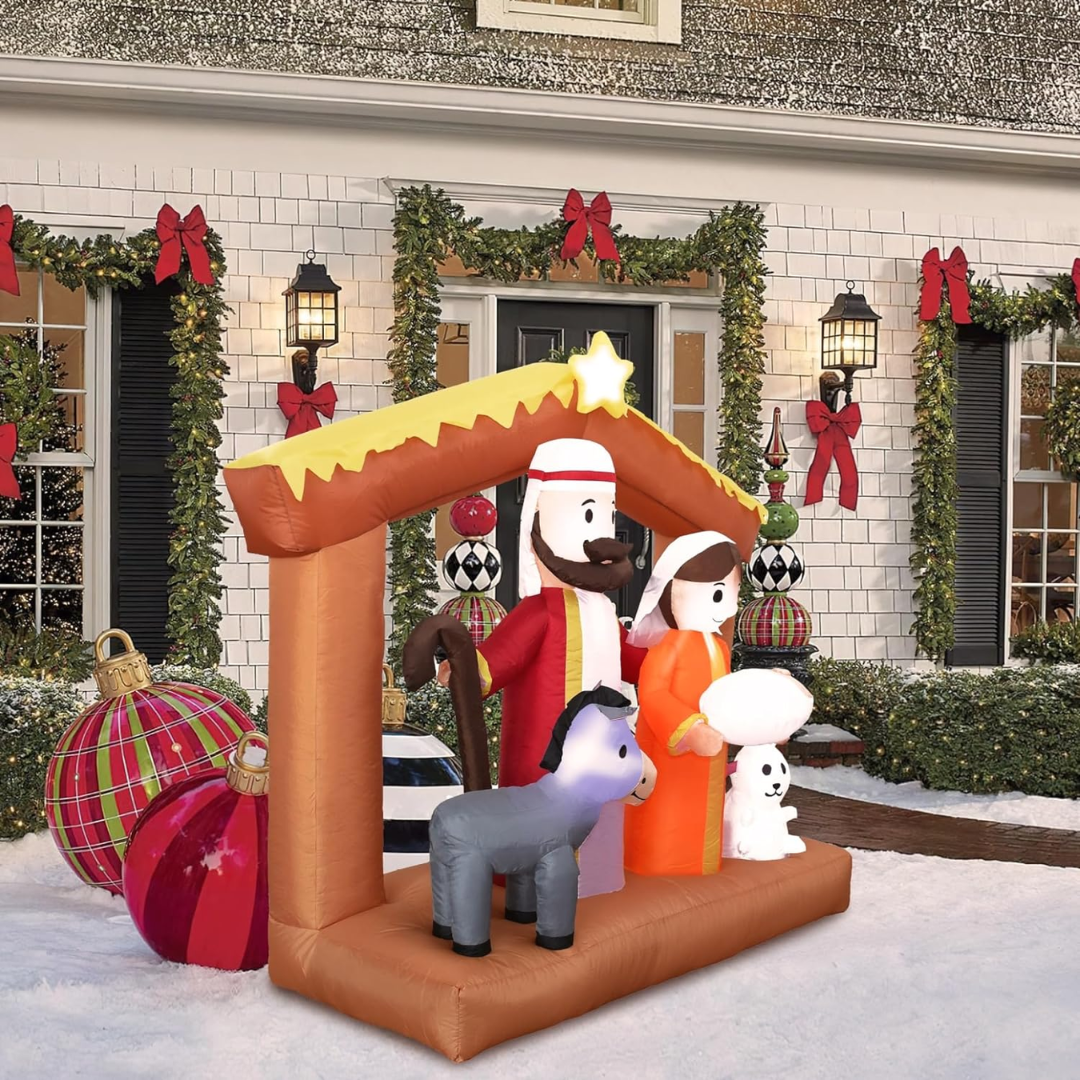 Lépj be a karácsony szellemébe otthonodba vagy kertedbe az úttal nagy felfújt díszítés Jézus születésének jelenetével. Ez a lenyűgöző dekoratív készlet melegséget, szimbolikát és ünnepi hangulatot hoz minden térbe, legyen az belső vagy kültéri.